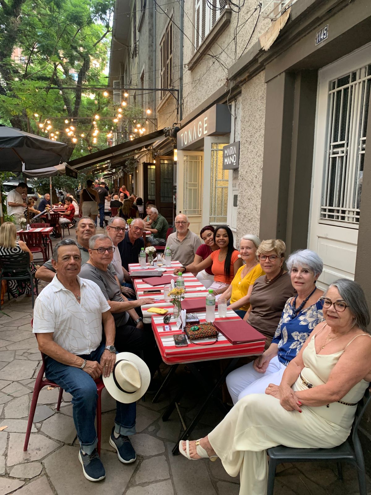 Da esq. Para a dir.: Meirelles, Macedo, Dotte, Gonçalves (Kurka) que veio de SC do Sul, Brum, Romanato, Agatha e Tatiane (filha e esposa do Kurka), Maria Helena Romanato, Consuelo Brum, Rose do Dotte e Lizette.