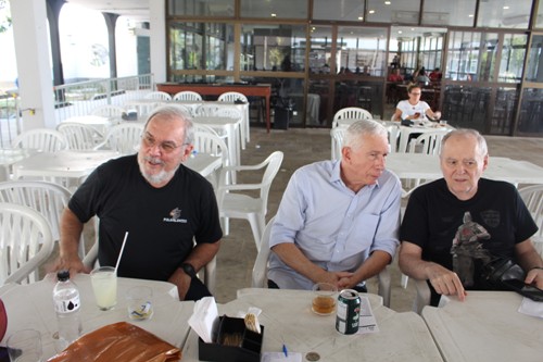 Com a euforia de sempre, um quorum considerável e a presença do aniversariante do dia Osmar "Gasparzinho" para os BQanos, "Pararurim" para os do CFPM, e Amorim para os da AFA - tivemos a nossa reunião de agosto no CAer da Barra da Tijuca, sede aerodesportiva.