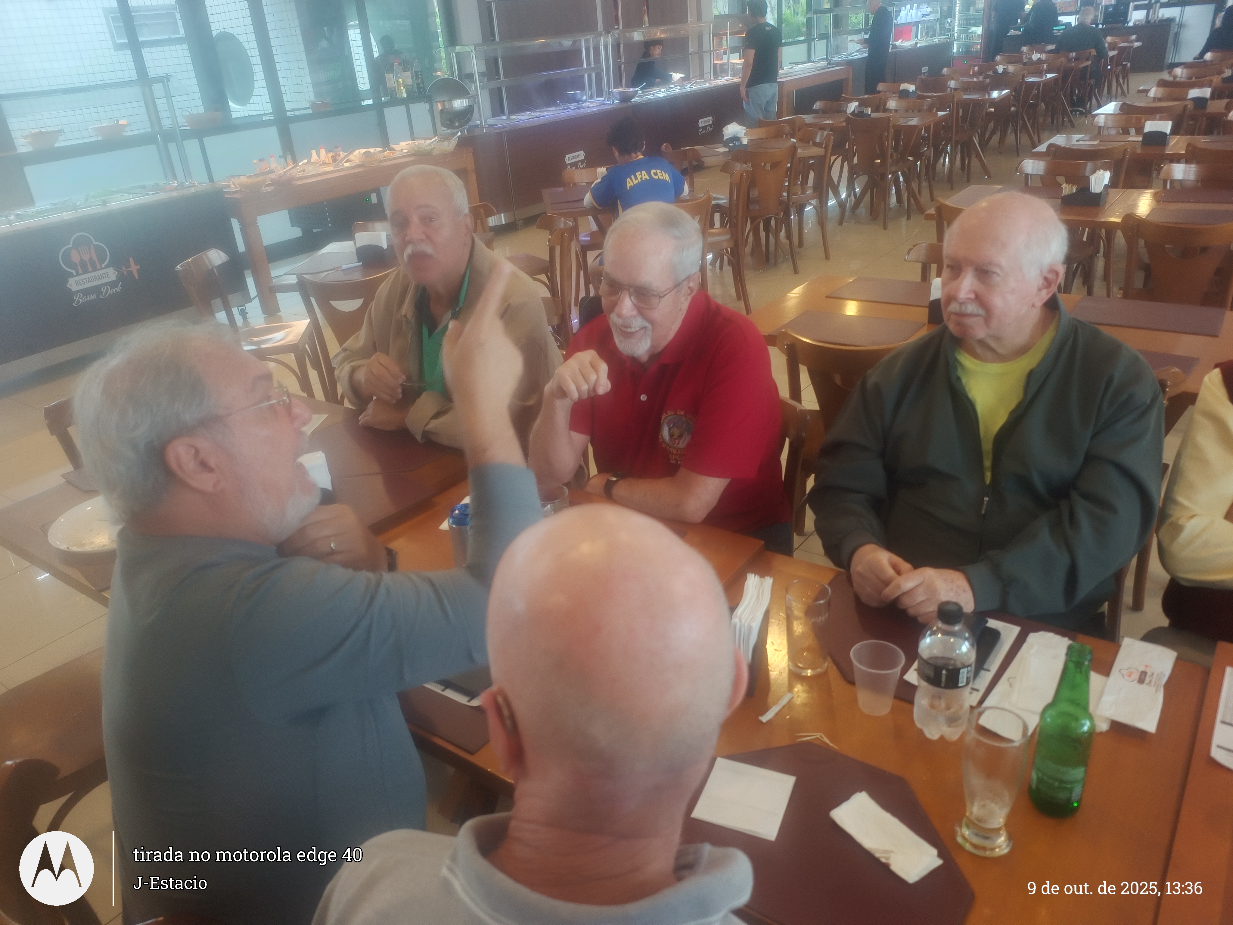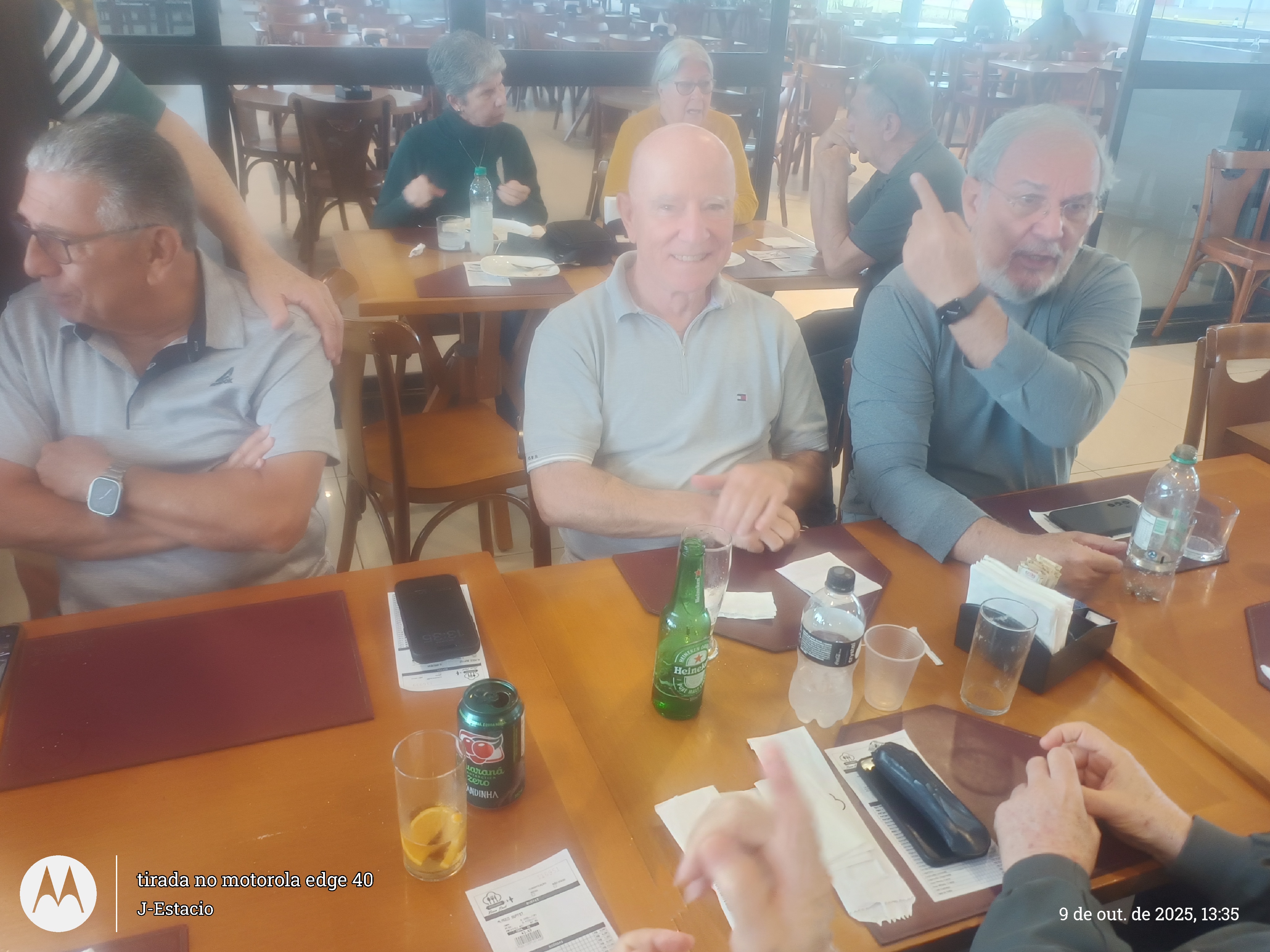 Tivemos nesta quinta feira chuvosa de outubro um quorum "pra cá" de bom, ao tempo que três contumazes frequentadores, Passos, Nélio e Santos Oliveira, justificaram suas ausências.