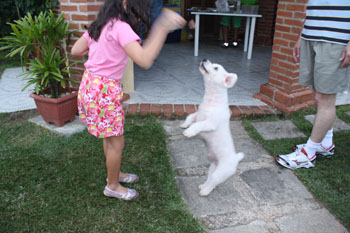 A festa foi completa. O Coré brindou-nos, o tempo todo, com músicas de fundo dos anos 60, 70 e 80 (Que som!). Com as dos anos 60 ele nos fez reviver os muitos bailes no Barbacenense, no Olimpic, no Rancho da EPCAR, e por aí afora... Valeu, mesmo, Coré! Mas, é claro, a festa não ficou só por conta das músicas. Viu-se um pouco de tudo. Tivemos discurso (causo) proferido pelo Cotecchia; tivemos um bolo alusivo à data com o DOM da EPCAR e a bolacha da Turma; tivemos carnes variadas de primeira qualidade; tivemos bebida à vontade; tivemos até, em dado momento, à beira da piscina, um bando de BQanos contando, uníssonos, algumas canções: “Tous les garçons et les filles de mon âge”, de Françoise Hardy (Quem não se lembra das famigeradas aulas de Francês nos laboratórios de Línguas, ao lado do Pátio das Paineiras?), seguida dos Hinos da EPCAR e do Aviador – vibração total!!! Tivemos duas menininhas encantadoras – Michelle e Ana Beatriz -, que abrilhantaram o ambiente com seus sorrisos e simpatia. Tivemos ainda um cãozinho poodle branco, surgido não se sabe de onde, que piruou o tempo todo as delícias da casa; assim como tivemos – essa não podia faltar -, o Bazar entre Amigas, com venda de bolsas, chinelos, capas de fuxico para celulares, além de outros babilaques para senhoras. Caramba!... não se perde tempo nessas ocasiões!...